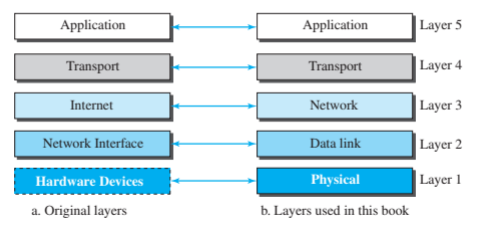 TCP/IP์์๋ 5๊ฐ์ Layers์ด ์๋ค. ๋ณธ ํฌ์คํธ๋ ๊ต์ฌ์ ๋์ผํ๊ฒ OSI ๊ณ์ธต๊ณผ์ ์ฐ๊ด์ฑ์ ์ดํดํ๊ธฐ ์ํด TCP/IP์ 3๊ณ์ธต(Internet), 2๊ณ์ธต(Network Interface), 1๊ณ์ธต(Hardware Devices)์ OSI ๊ณ์ธต ๋ช ์นญ๊ณผ ๋์ผ์ํ๋ค.